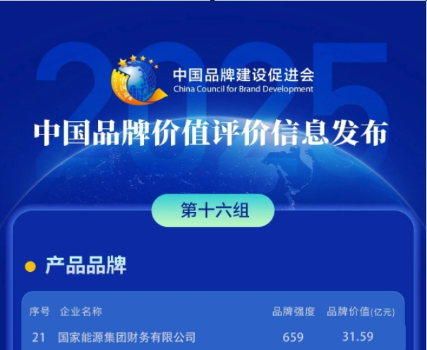 国家能源集团财务有限公司(以下简称“国家能源集团财务公司”)再次登榜,位列产品品牌第21名,为行业唯一入选财务公司。品牌评估价值31.59亿元,较上年增加4.54亿元,增幅16.8%;品牌强度较上年增加265,增幅40%。