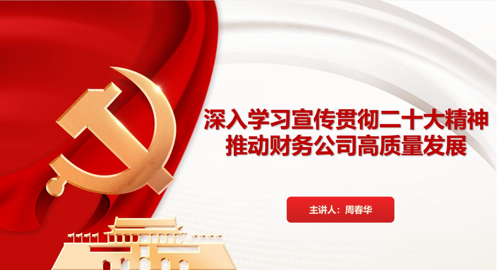 董事长周春华以《深入学习宣传贯彻二十大精神 推动财务公司高质量发展》为题,面向公司全体党员职工开