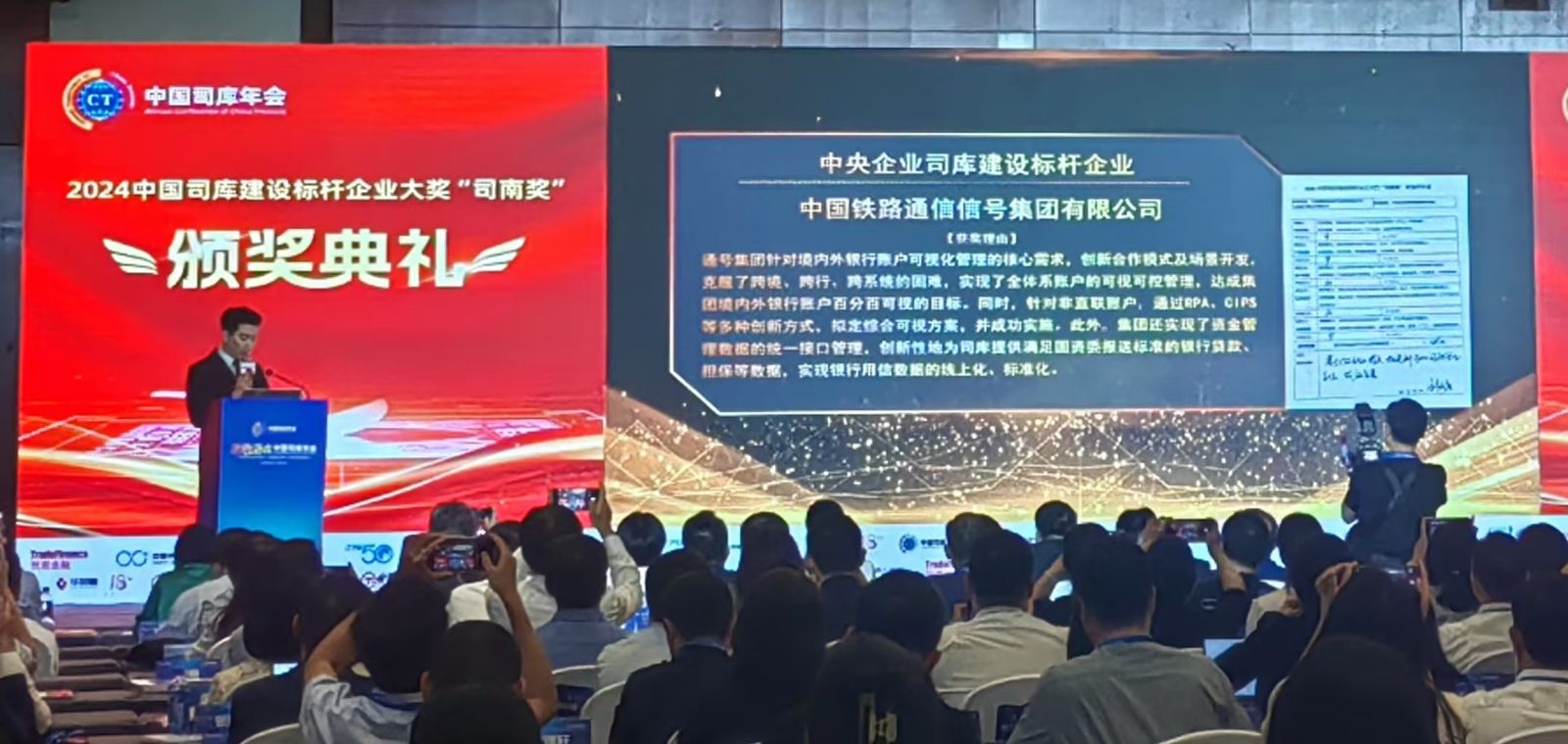 中国通号凭借自身在财务数智化转型、司库体系建设及财务创新领域中的出色表现,荣获“司南奖”——
