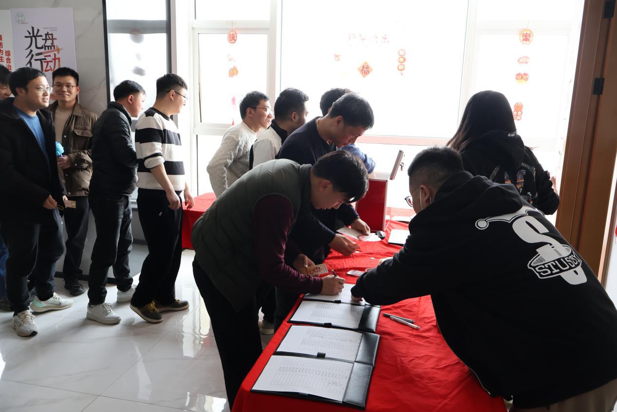 员工们遵循着 “想吃啥拿啥,吃多少拿多少,杜绝浪费” 的原则,自由挑选着心仪的美食。食堂里排起了长长