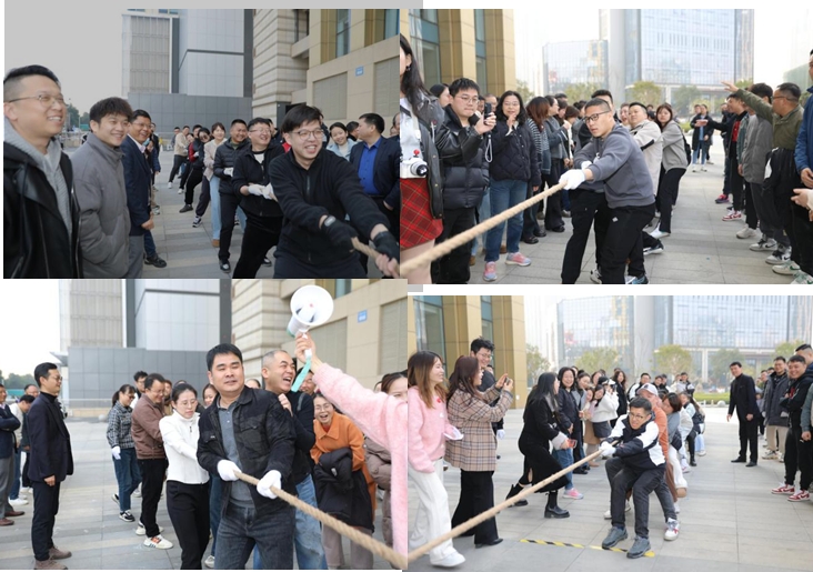 活动伊始,公司大楼前广场上举行的拔河比赛瞬间点燃了现场的热烈气氛。公司领导亲临现场,为参赛队伍