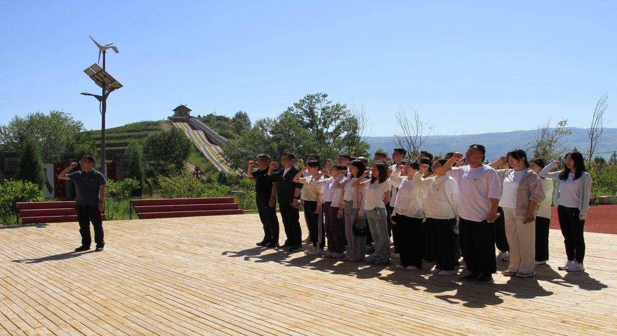 抵达基地后,党员们面向党旗庄严伫立,重温入党誓词。“我志愿加入中国共产党……”铮铮誓言响彻山野,既是对初心使命的再宣誓,更是对忠诚担当的再强化,进一步唤醒党员身份意识,凝聚“奋进新征程”的信念力量。