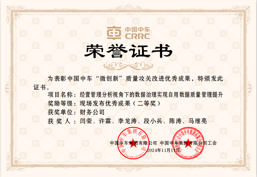 未来,中车财务公司将持续深化数据治理改革,推动企业高质量发展,为建设现代化经济体系贡献力量。
