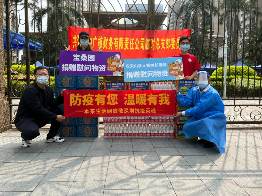 党旗所指,团旗所向。3月19日,财务公司临时团委在接到深圳市关爱基金会等相关公益组织的倡议后,联合资本控股公司团委、本来生活网,自发联系和协调防疫物资,在福田区福中社区、龙岗区坂田街道部分社区和布龙路东方半岛社会等社区开展了为一线医护人员、志愿者和其他工作人员送温暖活动,为抗疫工作中最可爱的人们送去关爱。