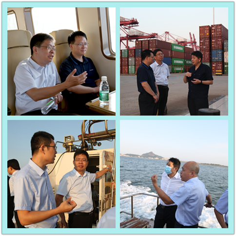 双方一同前往港区内进行实地调研,在海上概览主体港区,对港口泊位分布、功能建设以及生产工艺等情况进行了参观、交流。而后到达新亚欧大陆桥东端起点处观赏标志和题字,并对现场生产作业情况进行了解。