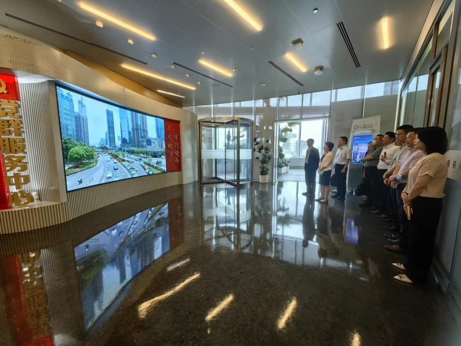22层陆家嘴金融城党建服务中心,学习了解楼宇党建特色模式。通过观看宣传片、参观信息发布厅、政治生活厅、