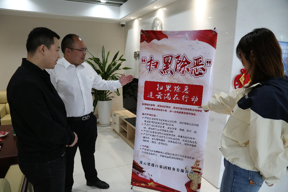 扫黑除恶专项斗争正在全国范围内如火如荼地开展着,这是以习近平总书记为核心的党中央做出的重大决策,事关社会大局稳定,保障人民安居乐业。近期,连云港港口集团财务有限公司(以下简称“财务公司”)积极响应国家政策号召及监管要求,专项排查和宣传教育双管齐下,创新活动方式,深入开展扫黑除恶专项排查和“扫黑除恶连云港在行动”主题宣传教育活动。