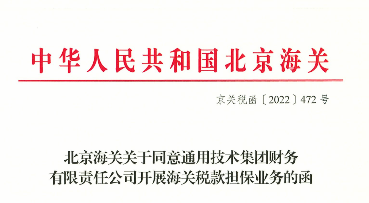 式得到北京海关批复同意,为通用技术集团所属成员单位出具全国通用的税款担保保函。