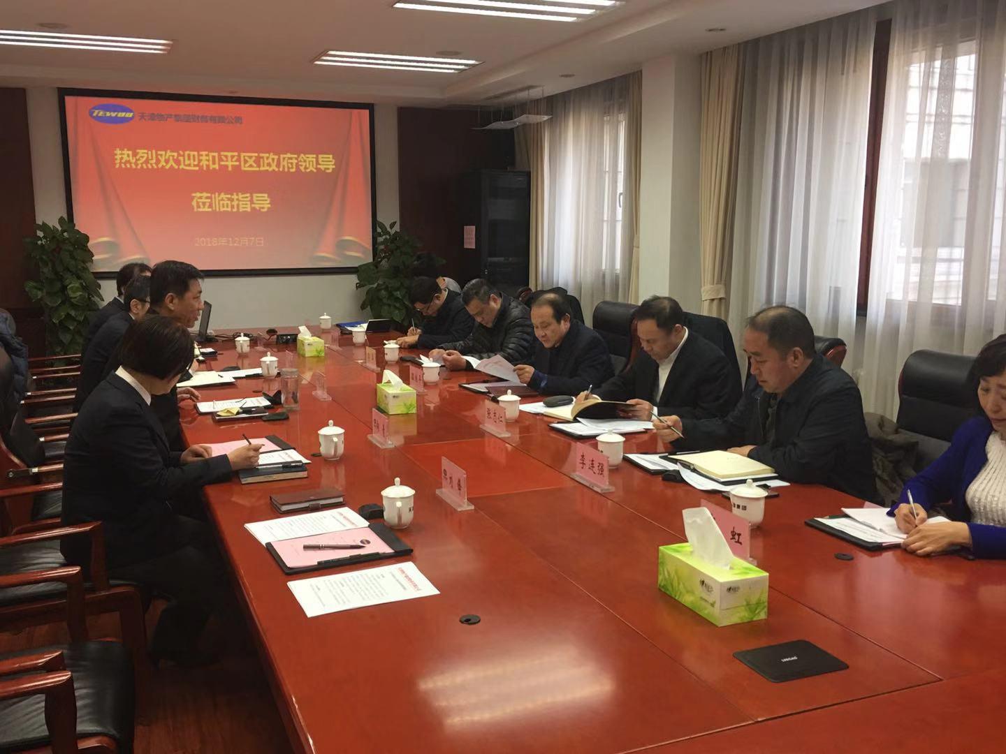 2018年12月7日,天津市和平区人大常委会主任温继平、和平区副区长张志仁带领区商务委、区合作交流办、区税源办等有关负责同志到财务公司进行调研服务,听取财务公司重点工作情况,并主持召开座谈会帮助协调解决公司在优惠政策、装修等方面存在的问题。集团副总经理、财务公司董事长张洪涛及公司相关部门负责人参加座谈交流。