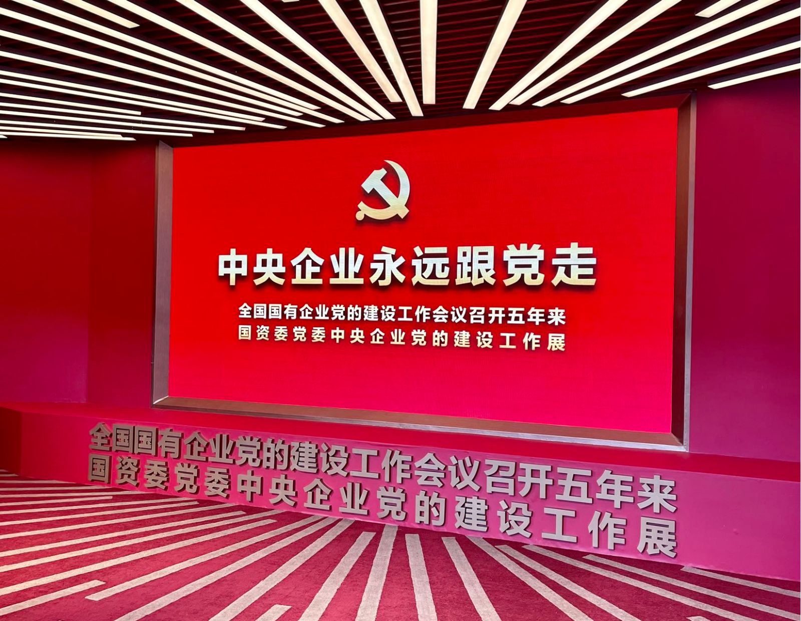 本次工作展以贯彻落实习近平总书记在全国国企党建工作会上的重要讲话精神为主线,围绕“中央企业永远跟党走”主题,通过“总章”“坚持把政治建设摆在首位 坚决做到‘两个维护’”“持续建设中国特色现代企业制度 推动央企改革高质量发展”“坚持党管干部党管人才 锻造高素质专业化队伍”“加强‘三基’建设 打造坚强战斗堡垒”“用好思想政治工作传家宝 凝聚改革发展正能量”“压实全面从严治党责任 着力提升党建工作质量”“结语”,通过文字、图片、视频、实物模型等8个篇章,全面展示了五年来国资央企认真贯彻落实全国国有企业党的建设工作会议精神的生动实践和党的建设取得的显著成效。