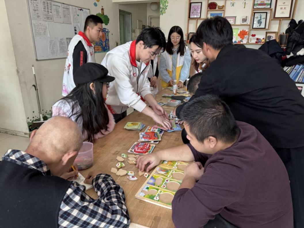 志愿服务活动。团员青年走进“慧灵智障儿童服务中心”,与脑瘫人士进行了亲密互动,陪伴他们做游戏、拼图、