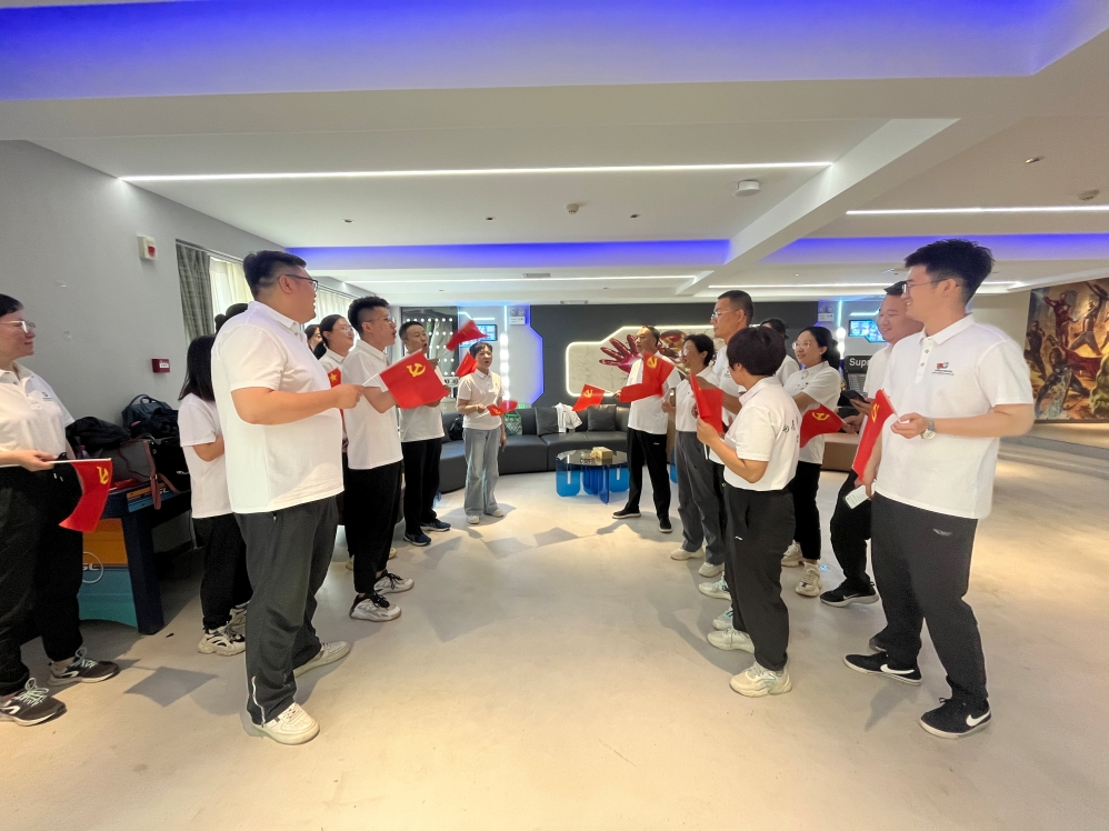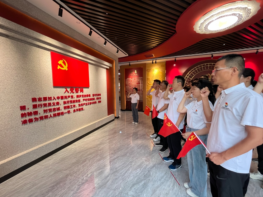 一次集体政治生日。在鲜红的党旗前,党委书记带领全体党员紧握右拳,重温入党誓词。铿锵有力的入党誓词,