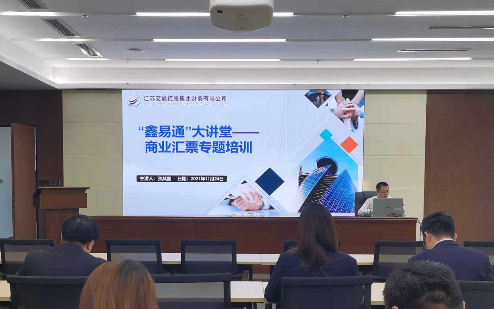 11月24日,为进一步推动商业汇票在集团交通产业链中的运用,发挥票据支付优势,同时防控票据业务办理过程中的信用风险、合规风险及操作风险,江苏交控财务公司组织开展第四十三期“鑫易通”大讲堂,专题讲授商业汇票业务知识。