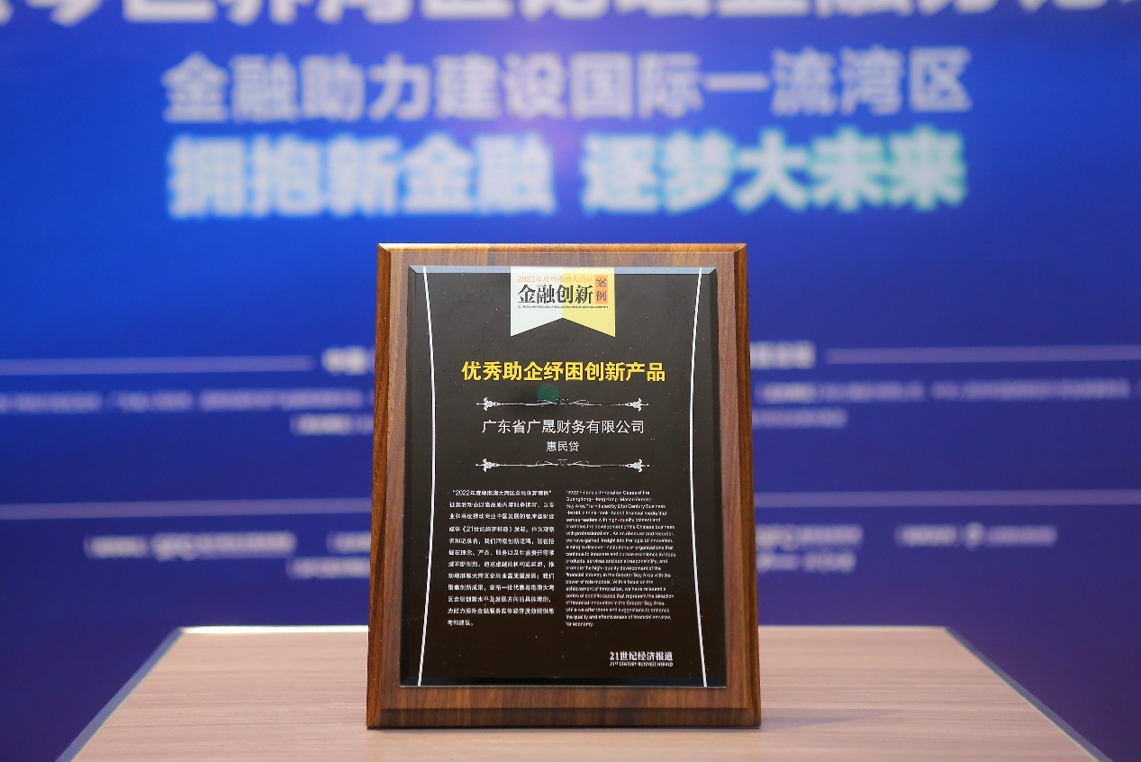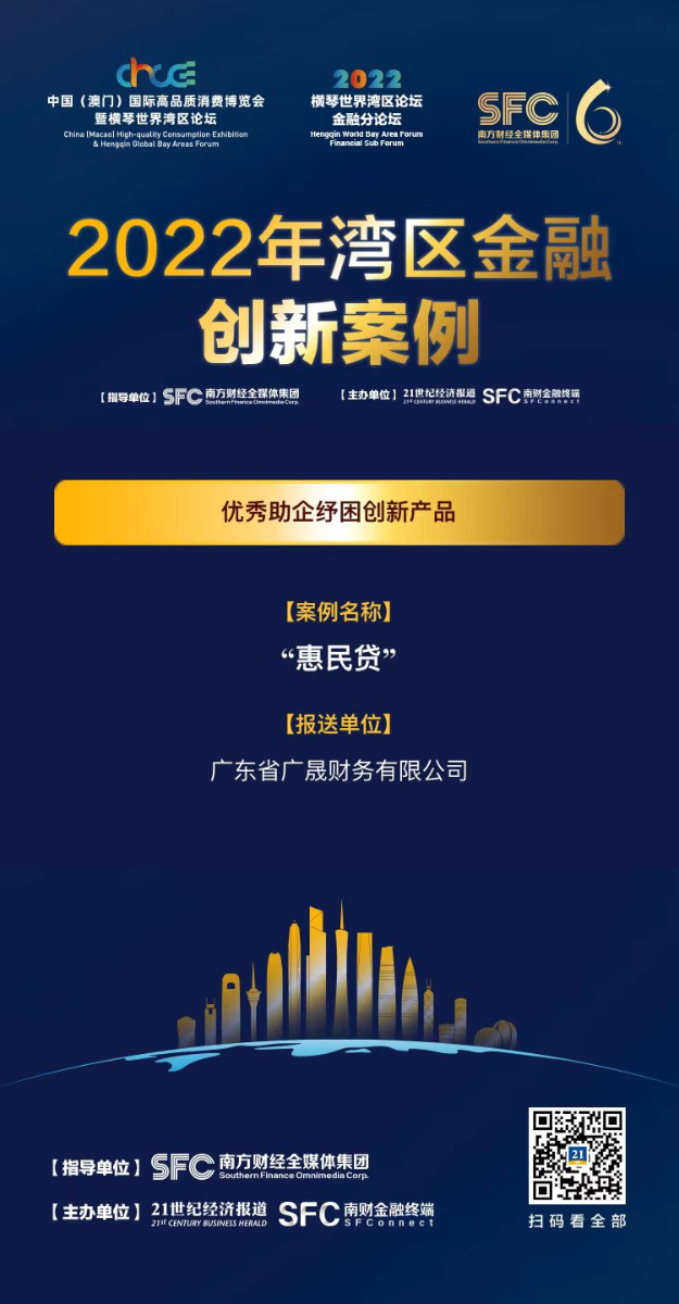 度湾区金融创新案例,广晟财务公司“惠民贷”业务案例荣获“优秀助企纾困创新产品”奖项。