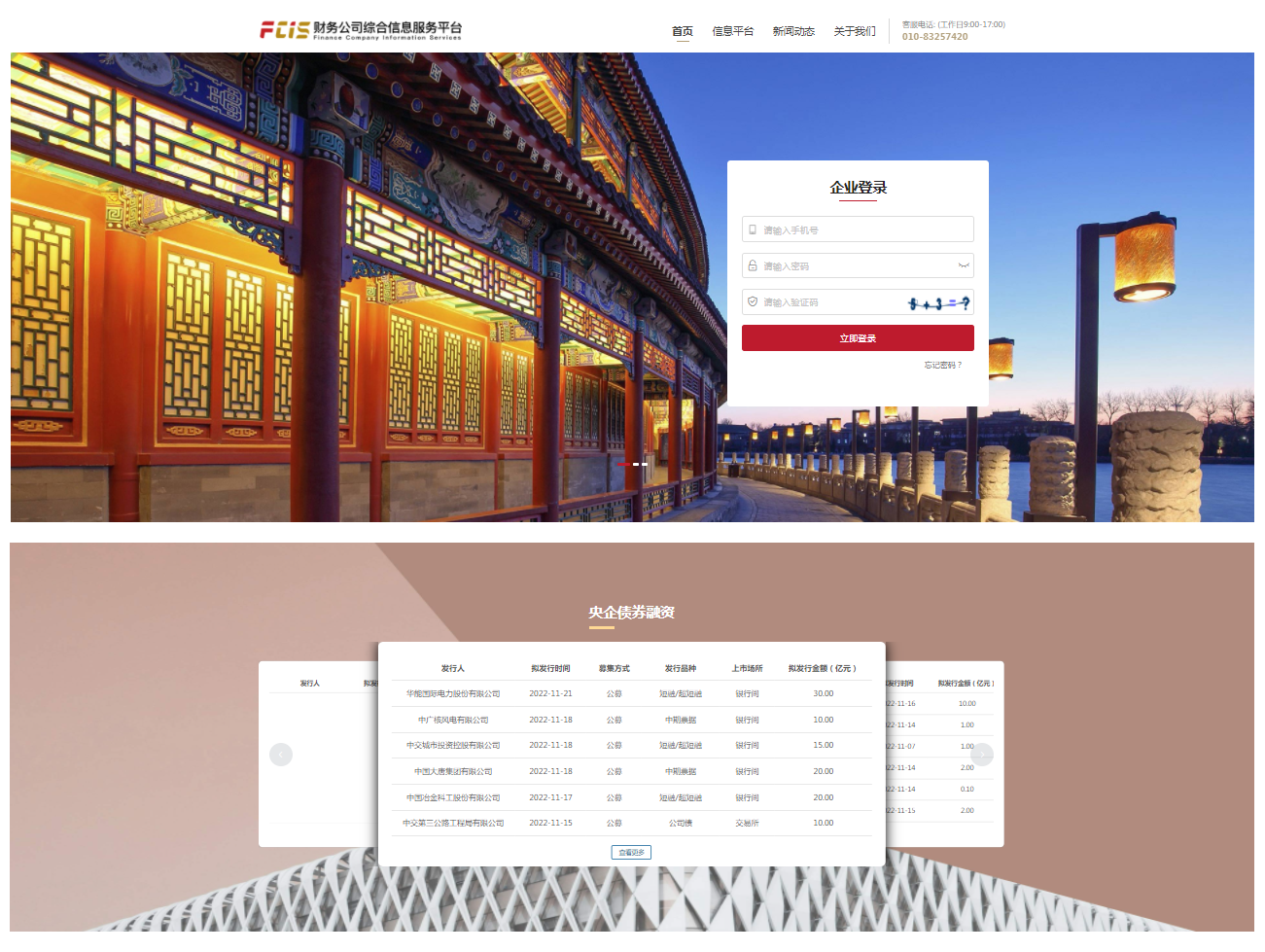 2022年11月10日,由国新集团财务有限责任公司设计搭建的财务公司综合信息服务平台