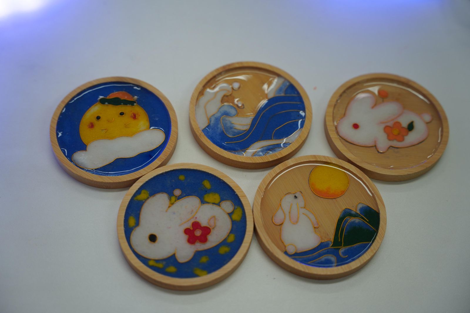 兔子等寓意中秋团圆的图案,然后再用彩色的珐琅釉料进行填充,结合中秋主题成功制作出了掐丝珐琅作品。整个制