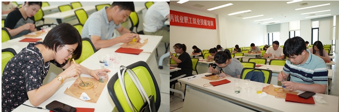 经过几个小时的努力,一件件精美的掐丝珐琅作品呈现在大家眼前。此次活动,不仅让职工们亲手触摸历史脉络,