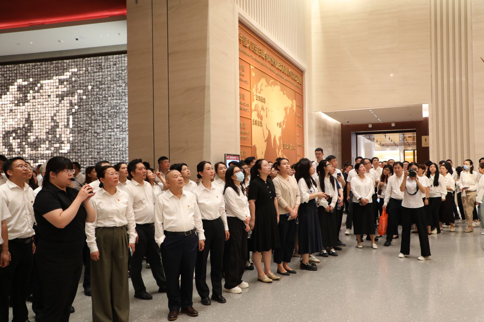 财务公司干部职工跟随讲解人员的脚步,参观了《为了民族解放与世界和平》主题展览的八个展厅,1.22万平方米的展厅内陈列着3237件文物与1525张历史照片,把1931—1945年那段山河喋血的十四年抗争,化作一幕幕可触可感的震撼现场。