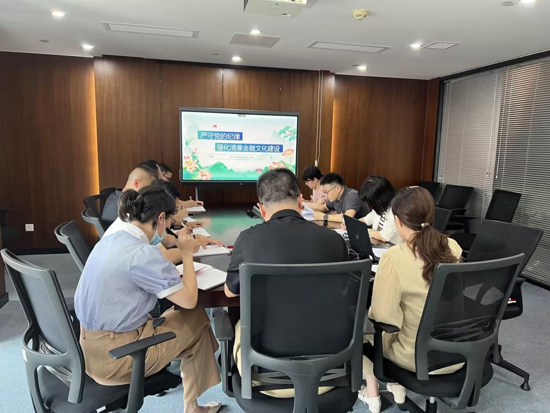 讲授专题党课,引导守纪守廉。支部书记讲授题为《严守党的纪律,强化清廉金融文化建设》的专题党课,学习习
