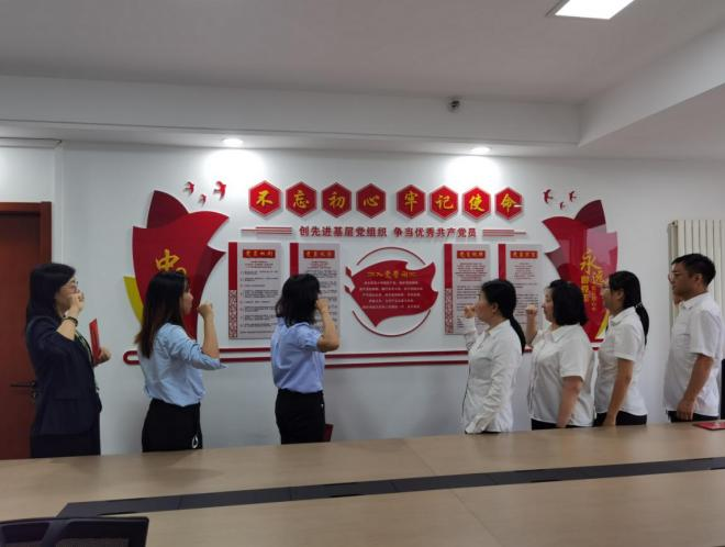 一堂庄严誓词重温:在曹旭鸣同志带领下,全体党员面向党旗重温入党誓词,以铿锵誓言叩问初心,凝聚“建功新时代”的奋进力量。