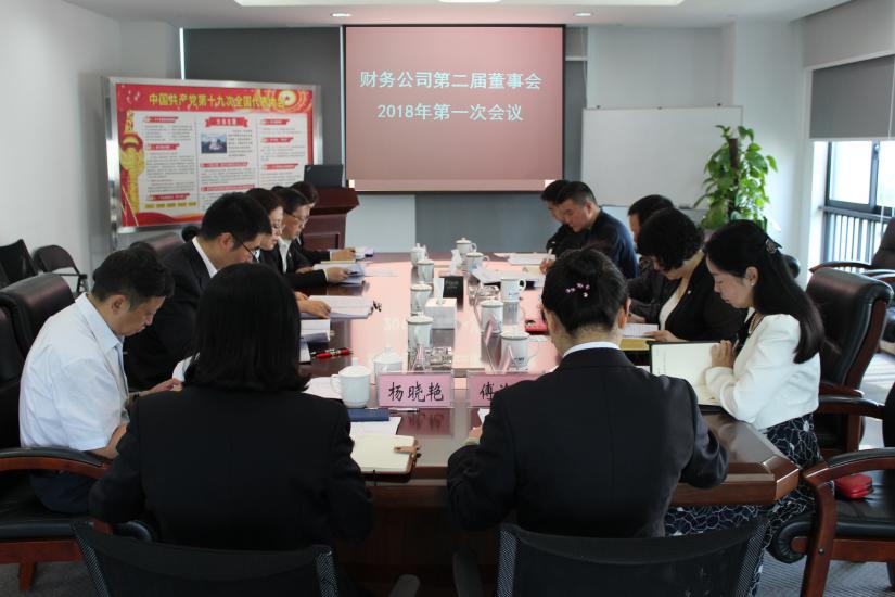 2018年4月19日上午,财务公司第二届董事会2018年第一次会议在六楼会议室召开。财务公司全体董事出席会议,会议由机电集团董事长、财务公司董事长王玉祥主持。重庆银监局非银处副处长宣容,非银处刘冲,财务公司监事,高管及股东方相关人员列席会议。