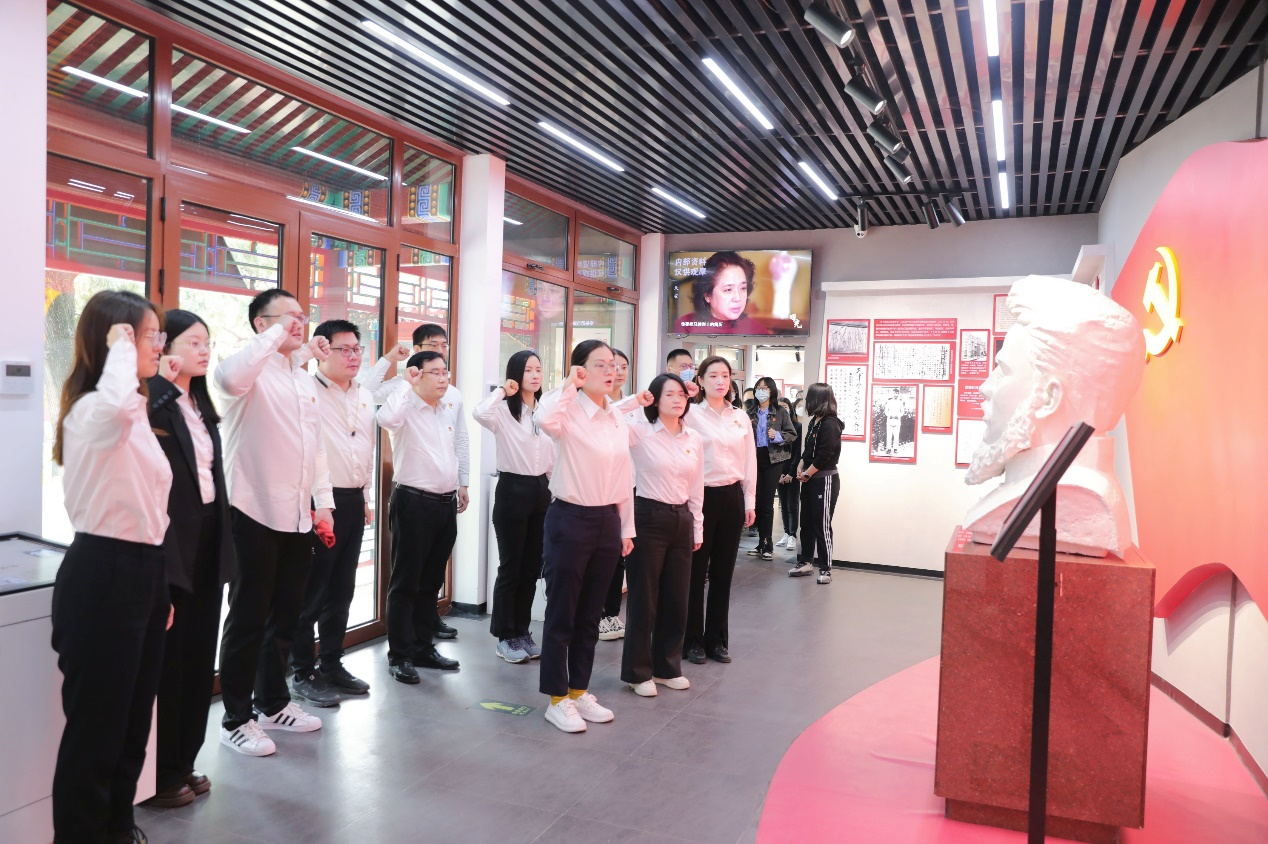 大牺牲,意识到了今日美好生活的来之不易。最后,大家面向党旗和英雄雕像,庄严重温入党誓词。