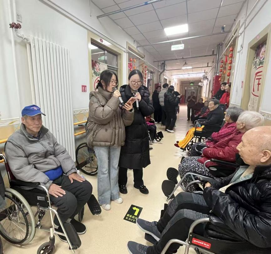 除了知识普及,青年团员们更注重对老人的精神慰藉。在养老院的活动室和长廊里,团员们分组与老人亲切唠家常,倾听他们年轻时的奋斗故事和生活中的点滴琐事。随后,一场别开生面的歌唱互动将活动气氛推向高潮。青年团员与老人们一起合唱《外婆的澎湖湾》《浏阳河》等经典歌曲,熟悉的旋律引发了大家的共鸣,现场掌声不断,笑声连连。温暖的陪伴如同冬日暖阳,让“敬老爱老”的传统美德在点滴行动中自然流淌。