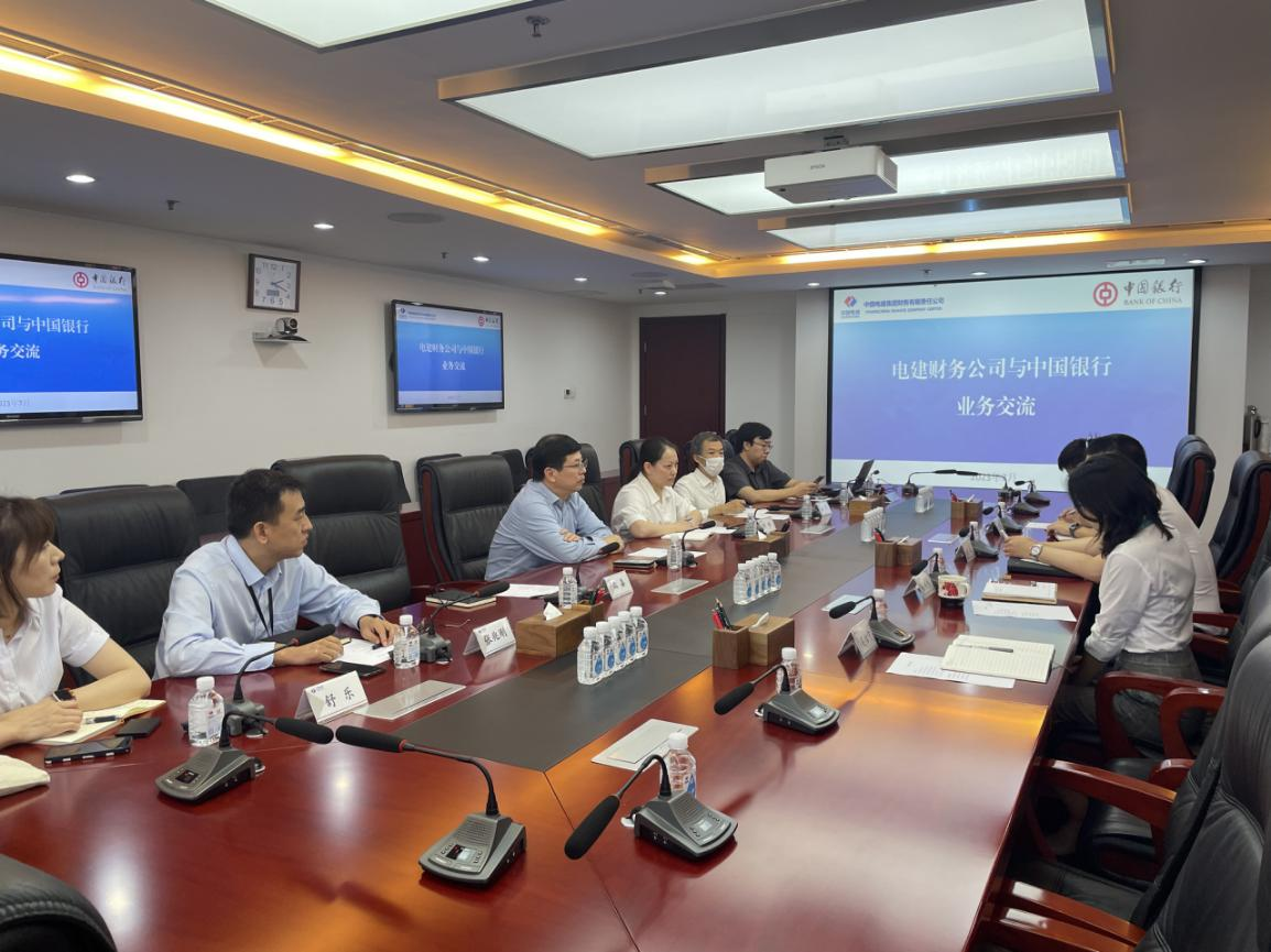 公司金融市场部向中行客人简要介绍了电建集团、财务公司的基本情况,回顾了双方的良好合作情况,并重点就