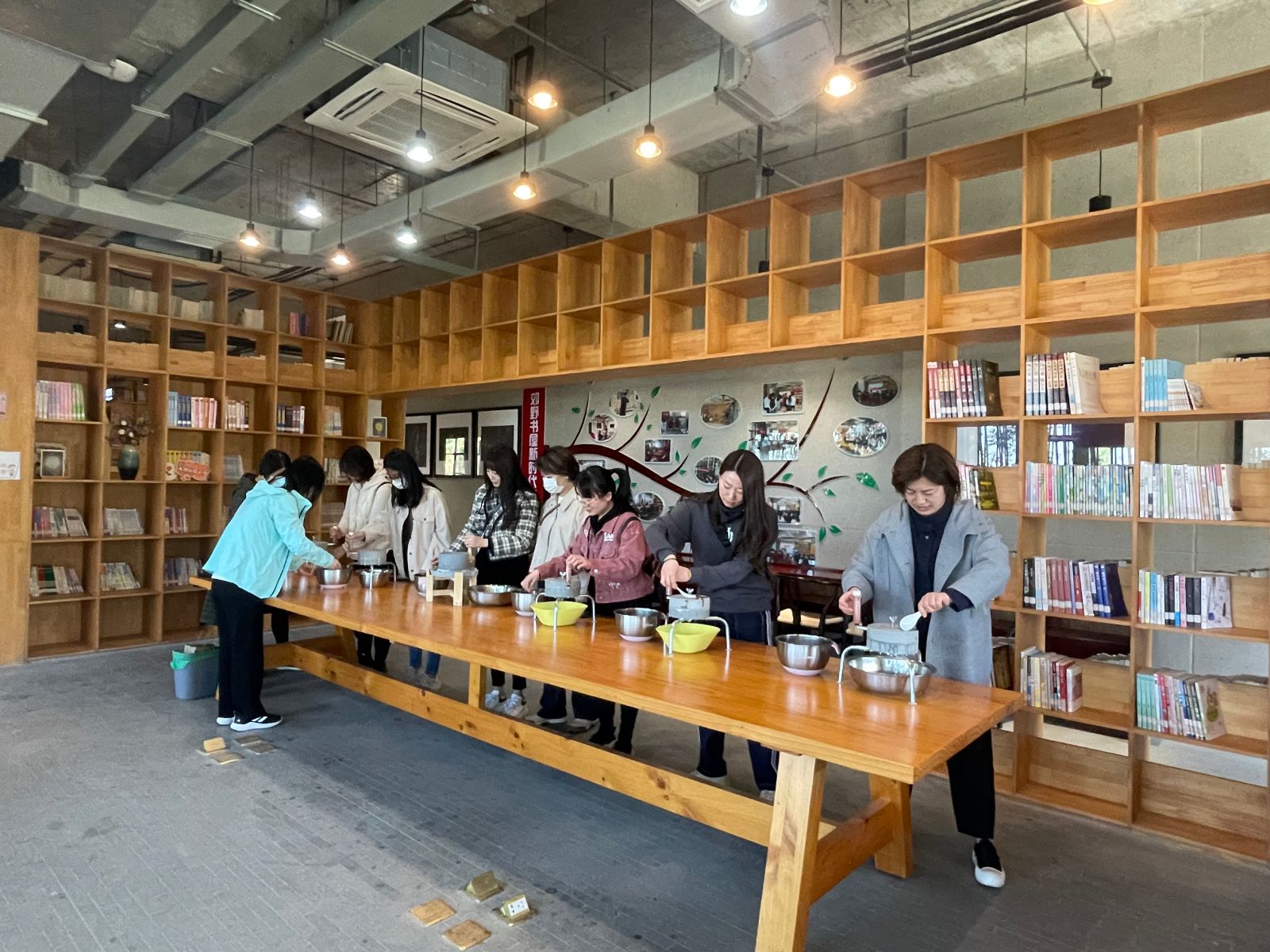 浓浓书香扑面而来,浅灰的建筑镶嵌在郁郁葱葱的山林之中,充满了静谧闲适的气息。随后,大家在园区工作