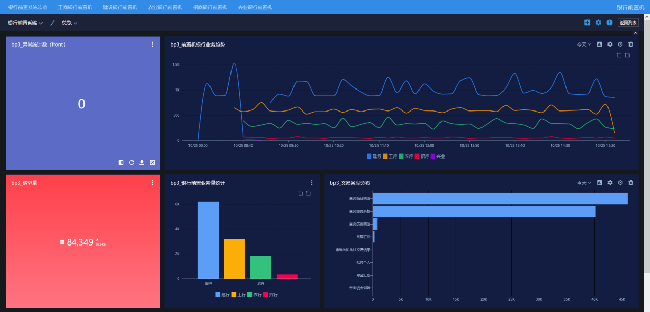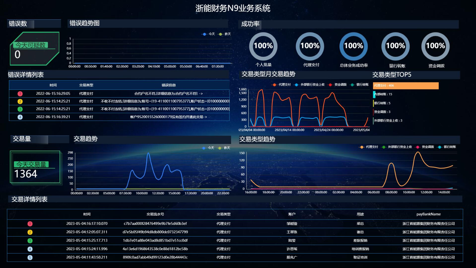 的资金交易预警大屏。通过实时动态监测,将业务系统问题和告警消灭在萌芽阶段,大大提升了系统可用运营时