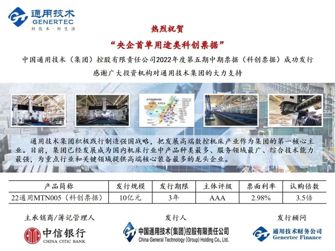 6月23日,央企首单用途类科创票据成功落地——通用技术集团2022年第五期