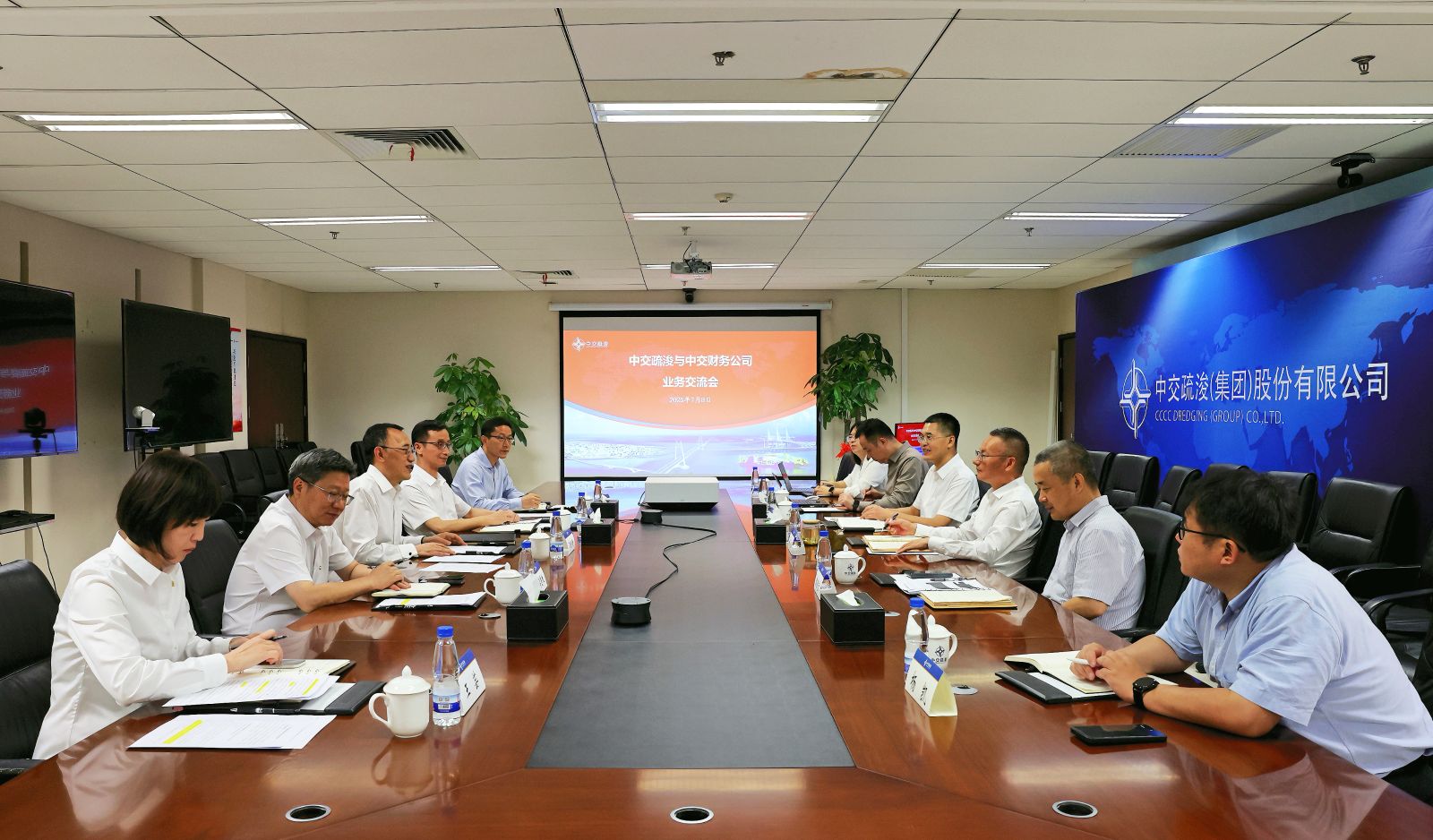 7月8日,财务公司党委书记、副董事长李金明率队拜访中交疏浚,与中交疏浚党委书记、董事长刘永满进行座谈。双方围绕落实集团工作部署、深化产融协同、聚力财务价值创造等议题进行了深入交流。