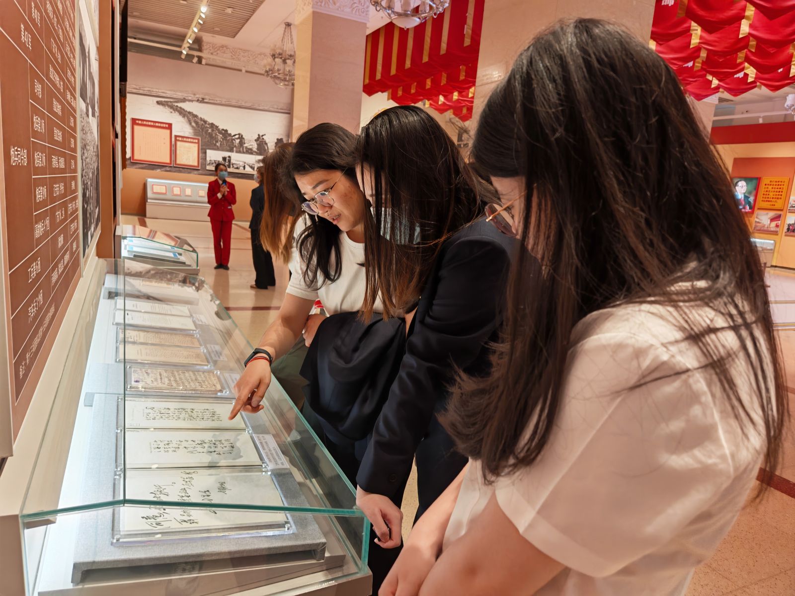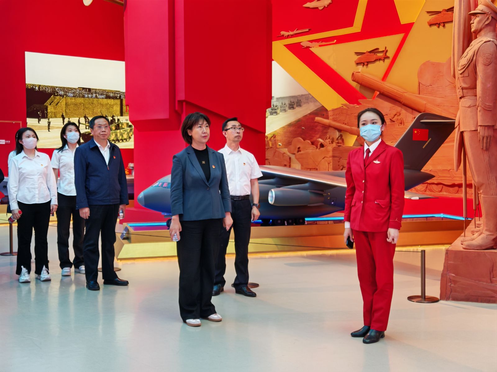 在讲解员引导下,参观人员怀着崇敬的心情先后参观了抗美援朝馆和新时代国防建设成就展,系统学习党领导人民军队从抗美援朝时期的艰苦斗争到新时代强军征程的伟大成就。战场上使用过的枪炮、志愿军战士的遗物等珍贵展品,生动地展现了志愿军战士们在面对强大敌人时毫不畏惧、英勇奋战的英雄气概。一系列现代化的武器装备模型、反映国防建设成果的图片以及视频资料,全面展示了我国在新时代国防和军队建设方面取得的辉煌成就,生动彰显了人民军队听党指挥、能打胜仗、作风优良的精神特质。