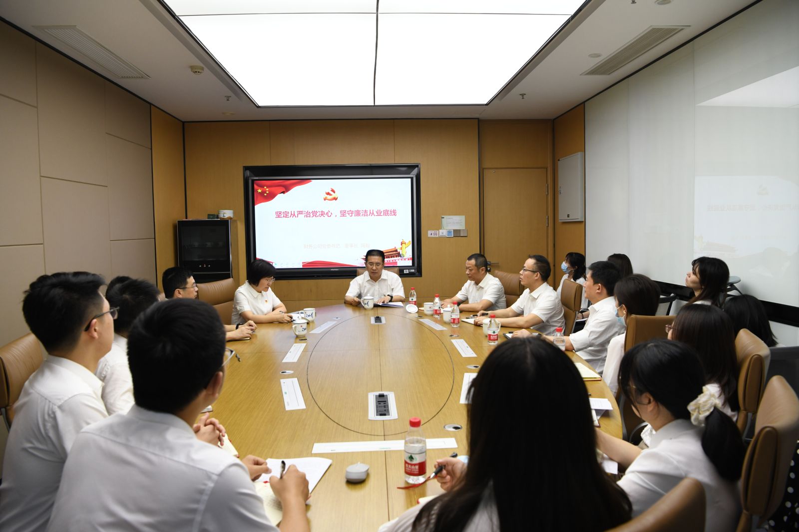 在专题党课中,公司党委书记、董事长陶毅以《坚定从严治党决心,坚守廉洁从业底线》为题,围绕新时代全面从严治党工作、金融领域反腐败的新形势和公司全面从严治党的工作要求,通过丰富的史料、详实的数据、典型的案例,开展了深入浅出、引人深思的分析讲解,旨在教育引导公司党员干部职工强化政治自觉,深刻认识全面从严治党的重大意义,全面理解新时代全面从严治党取得的历史性、开创性成就;强化思想自觉,深刻把握金融领域反腐败的新形势,时刻保持警惕,始终自重自醒,恪守廉洁纪律,严防金融腐败;强化行动自觉,深入推进公司全面从严治党向纵深发展,一体推进“三不”建设,强化系统治理,持续打好党风廉政建设和反腐败斗争的攻坚战持久战,全力建设清廉财司。