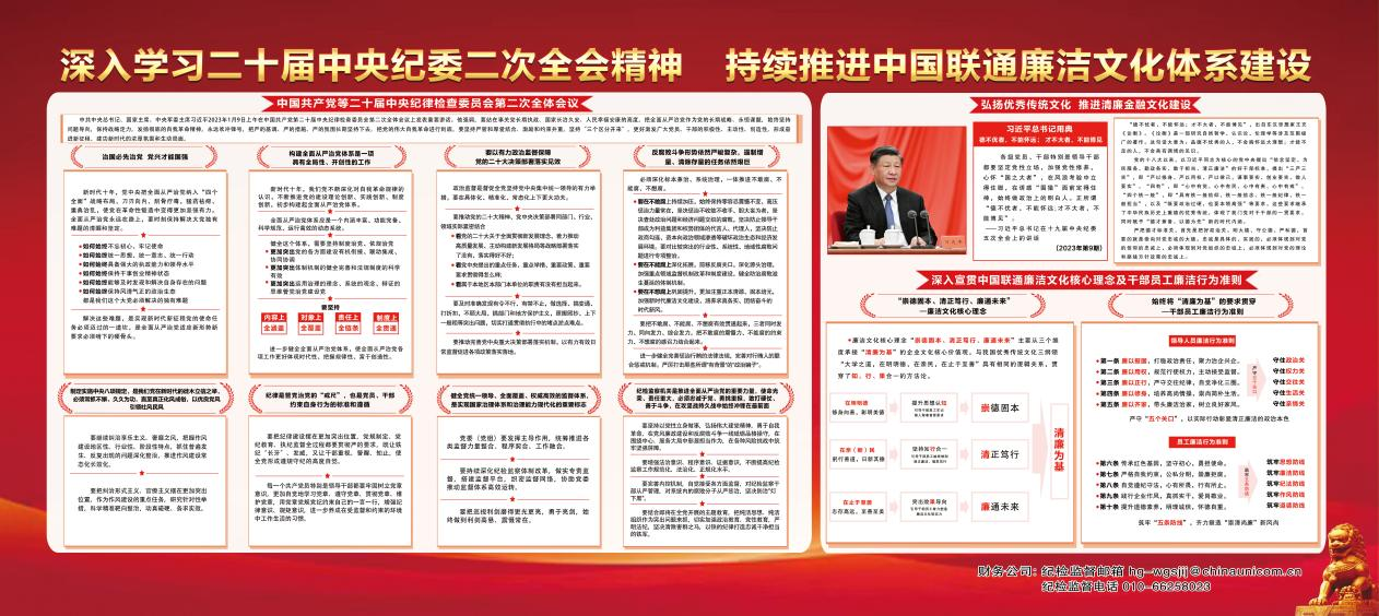 报专栏,制定新版廉洁文化宣传海报及录制微视频,深入学习二十届中央纪委二次全会精神,持续推进中国联通廉洁文