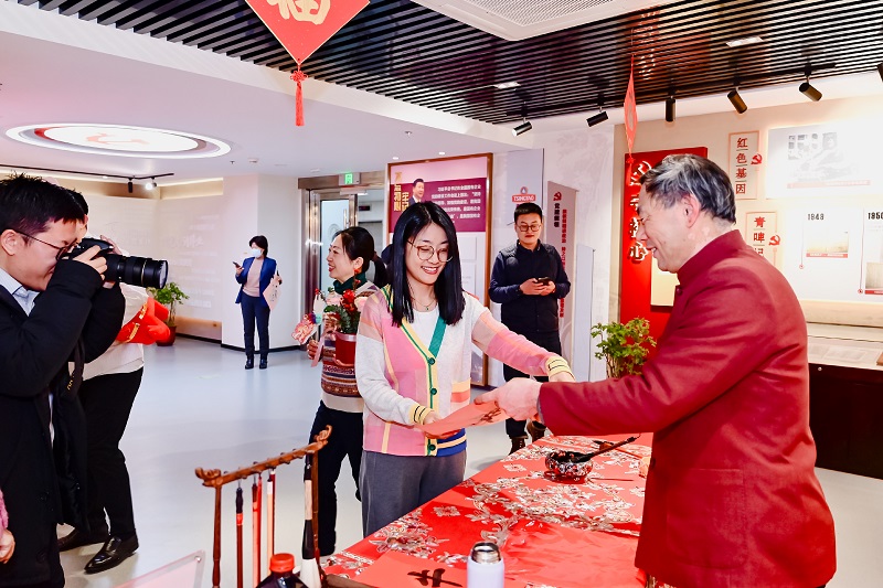 带来一缕缕暖意,拿到春联和“福”字的职工也是喜上眉梢、连声称赞。