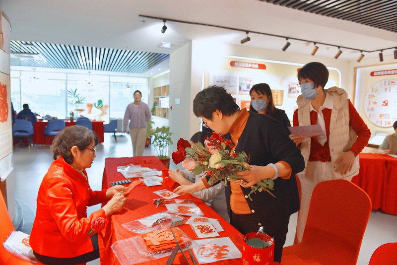 剪窗花活动吸引了不少手工爱好者参与,大家一边与非遗剪纸传承人学习剪窗花的步骤和方法,一边折叠剪裁,