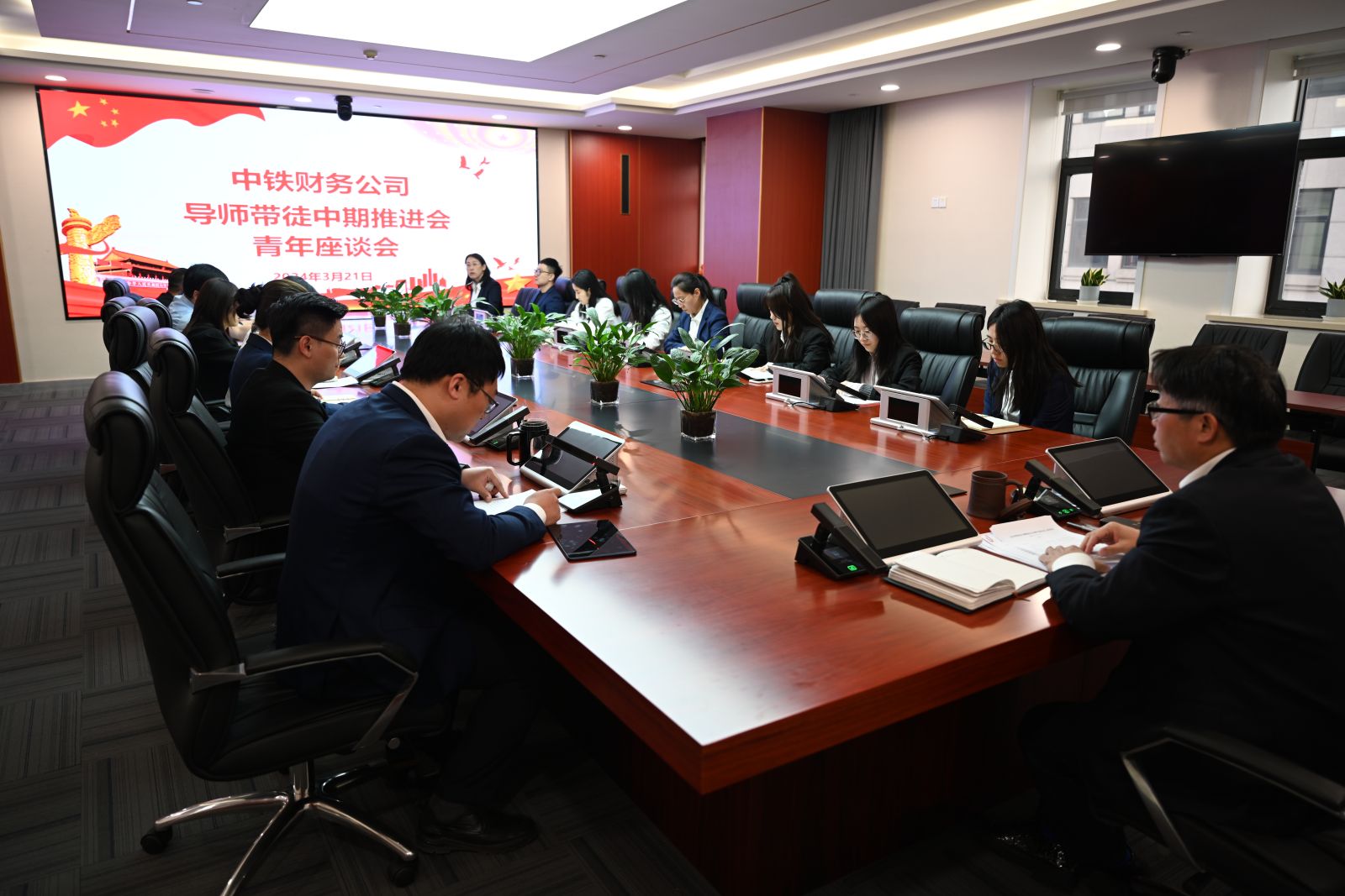 3月21日,中铁财务公司人力资源部(党委干部部)、团委联合组织召开了导师带徒中期推进会及青年座谈会。