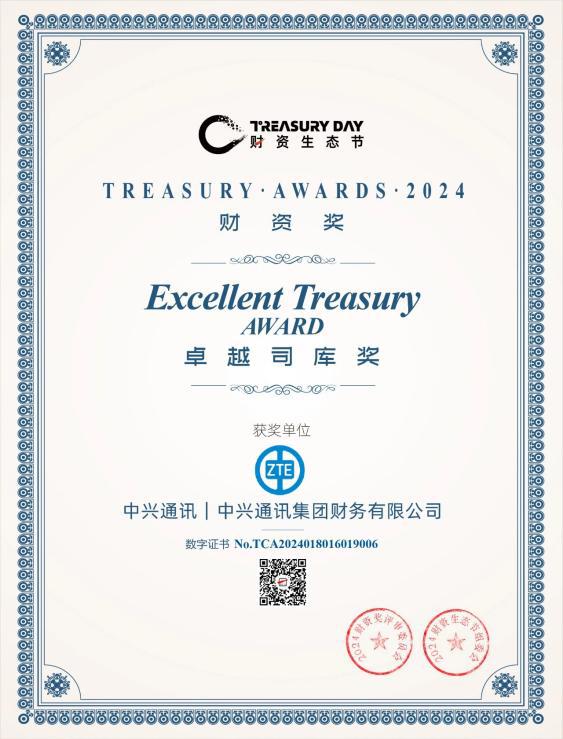 “财资奖”是由财资中国、财资数科联合主办的行业权威奖项,该奖项的获得不仅是对中兴通讯财