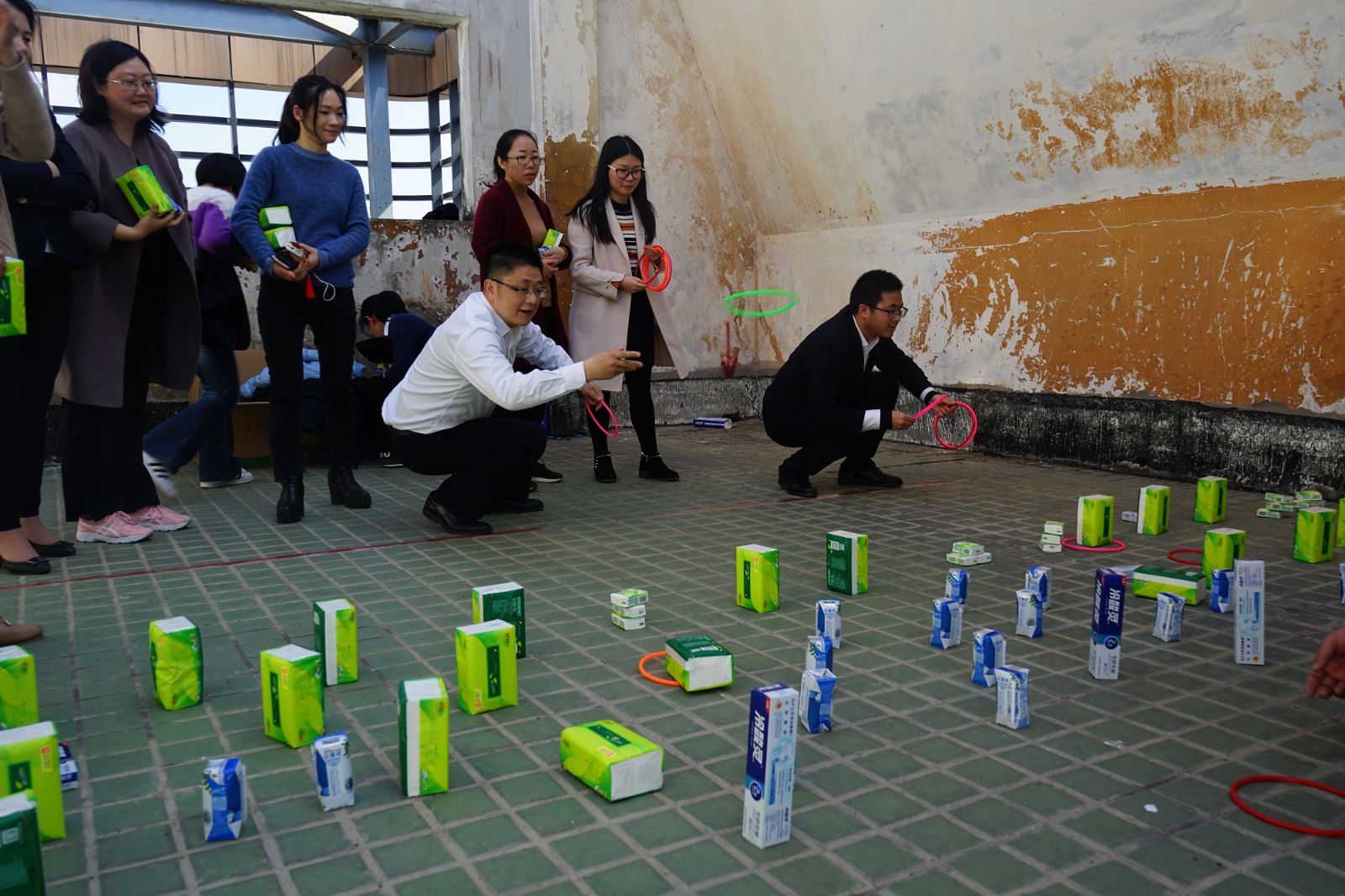 2019年1月31日中午,福能集团财务公司工会利用中午休息时间在方圆大厦顶楼空地开展了2019年“迎新春”游园活动。本次活动一共分为四个环节:心心相印、乒乓球接力、套圈、扔飞镖。