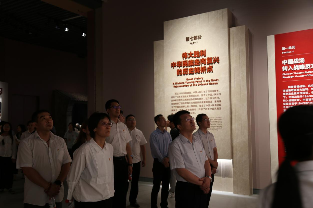今年是中国人民抗日战争胜利80周年,也是中国中车成立10周年,为铭记艰苦卓绝的抗战历史,缅怀为争取民族独立和人民自由幸福牺牲的人民英雄,珍惜来之不易的和平幸福生活,引导财务公司员工以高质量的金融服务赋能国家轨道交通装备事业新质生产力发展,财务公司公司国际结算党支部联合团委在公司党委副书记、总经理赵世军,副总经理付建平,党支部书记赵普,团委书记李龙涛的带领下,前往中国人民抗日战争纪念馆,开展党团共建活动。