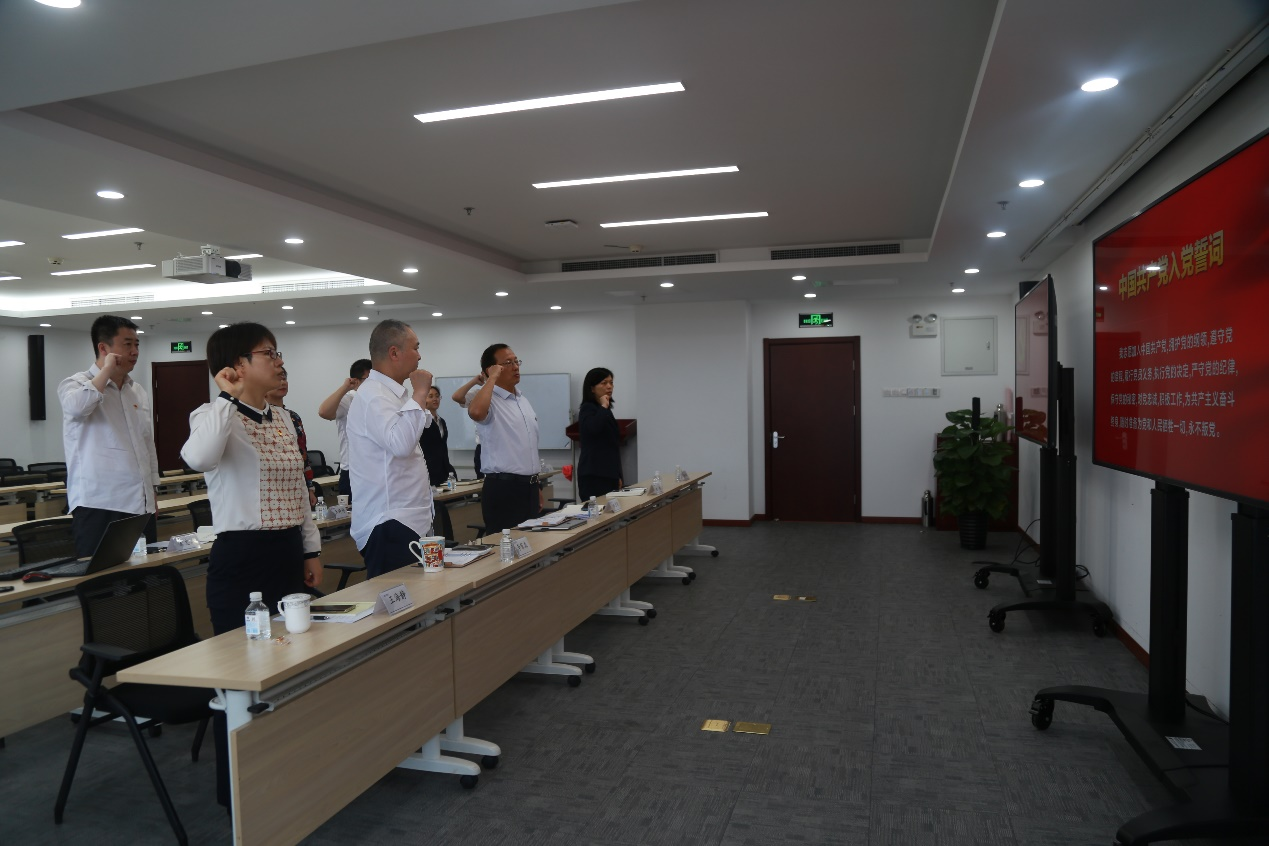 与会人员集体观看了警示教育片《永远吹冲锋号》第三集“铁规矩、硬杠杠”,面对党旗,重温了入党誓词。