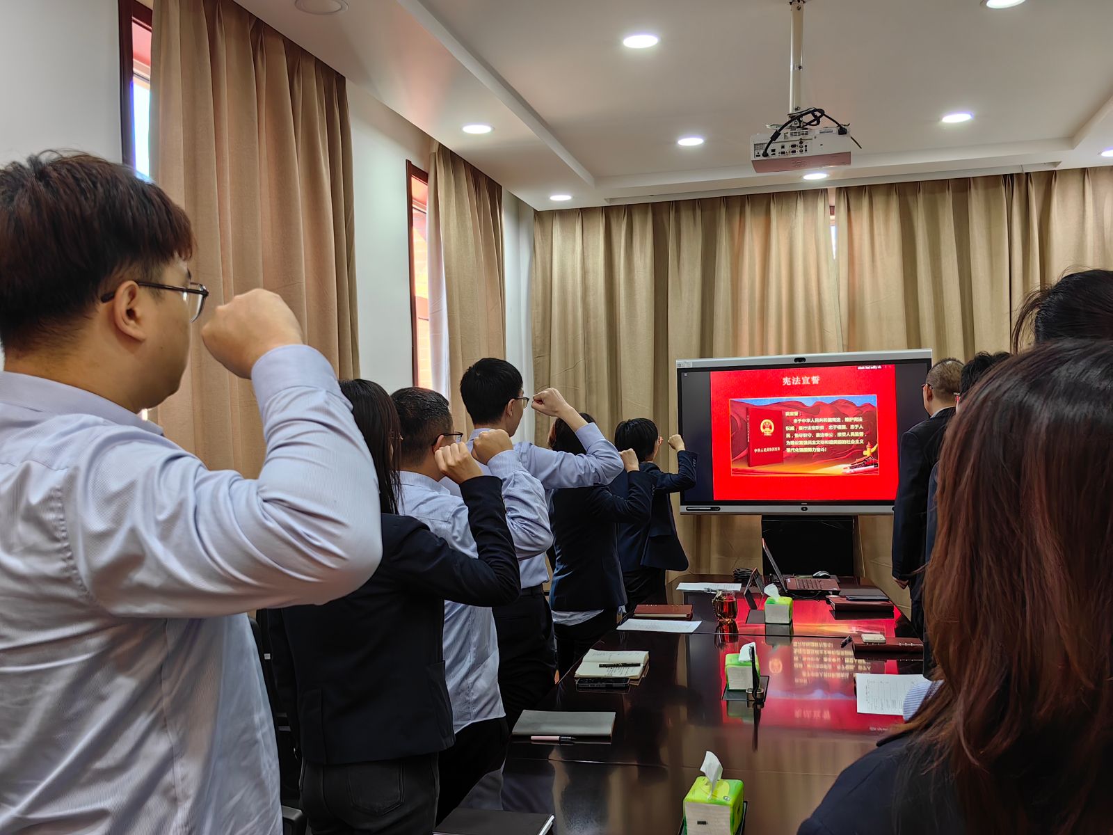 公司总经理带领中层干部及新员工进行宪法宣誓。12月4日,正值我国第十一个国家宪法日之际,公司举
