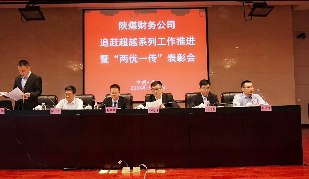 2018年9月16日上午,陕煤财务公司在研发大楼三楼会议室召开追赶超越系列工作推进暨“两优一传”表彰会。公司领导及全体员工参加会议,公司董事长邓晓博作主题讲话,总经理李盈斌主持会议。会议回顾总结和安排部署了一流团队建设、全员服务机制、“两优一传”等改革创新重点举措。