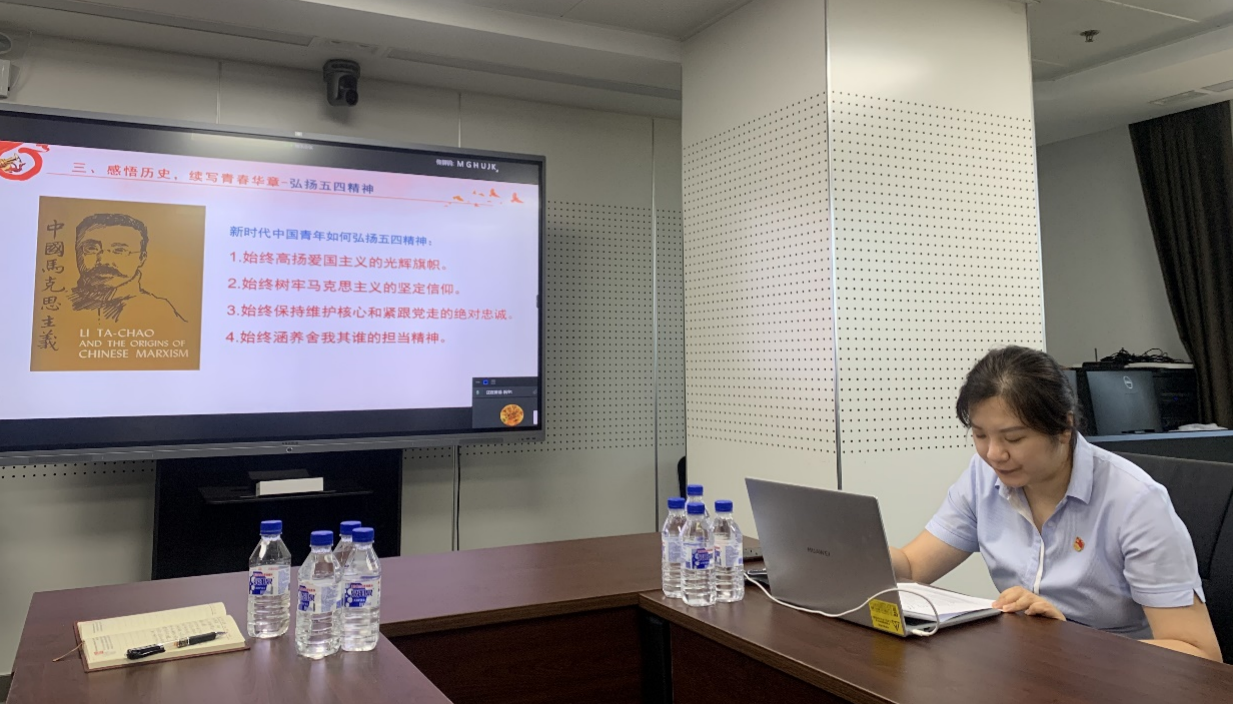 6月24日下午,公司第三党支部书记阮宇同志以《五四运动—点亮中国光耀百年的历史火炬》为主题,开展了专题党课活动。支部全体党员及积极分子现场聆听了党课,客户服务中心同志以视频接入的方式参加会议。