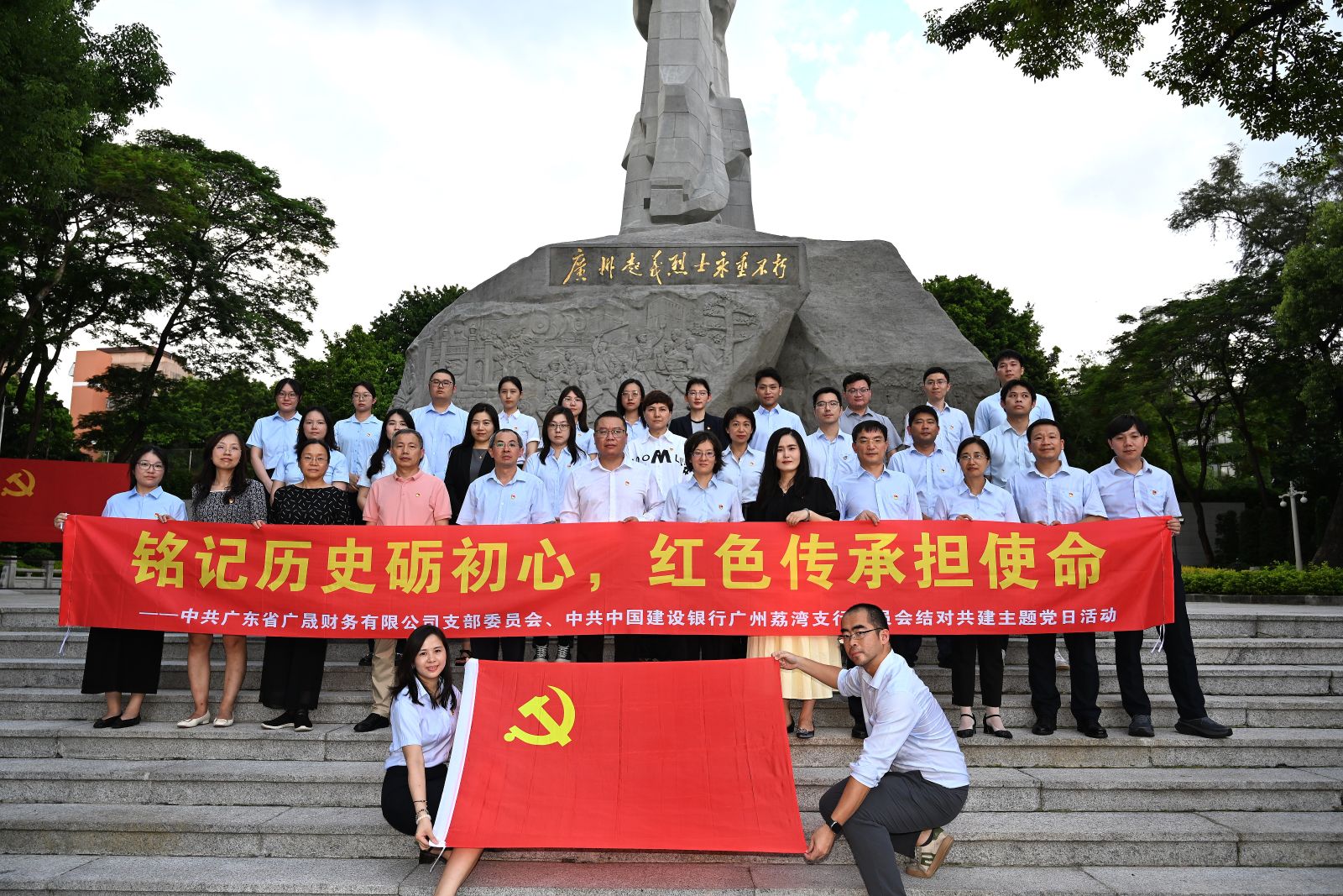 松柏肃立、鲜花低垂。7月23日下午,广州起义烈士陵园广州起义纪念碑前,广晟财务公司党支部与建设银行广州荔湾支行党委40余名党员、干部职工列队肃立,以一场简约而庄重的仪式开启“铭记历史砺初心 红色传承担使命”结对共建主题党日活动。广晟财务公司党支部书记、董事长陈赟,党支部委员、副总经理潘志刚、阳永;建设银行广州荔湾支行党委委员、副行长(主持工作)吴海青,党委委员、副行长高弘出席活动。