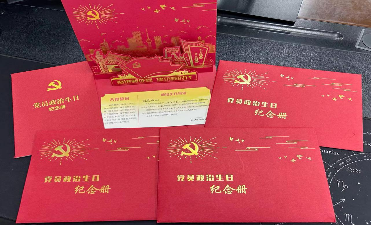 双方为全体党员过“政治生日”,发放内页印有入党誓言和政治生日寄语的贺卡,提醒激励党员不忘初心、牢记