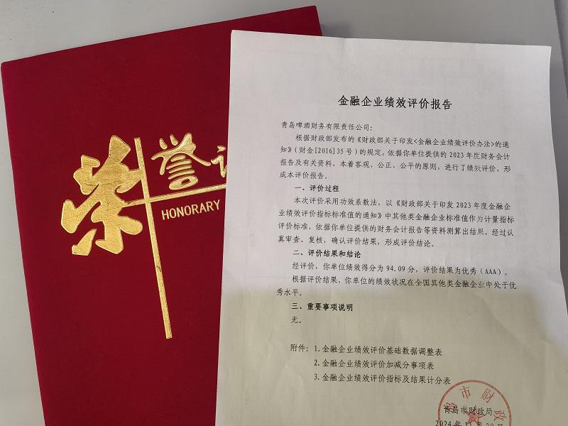 近日, 青岛市财政局公布青岛市金融企业绩效评价结果,在2023年度其他类金融企业绩效评价考评中,