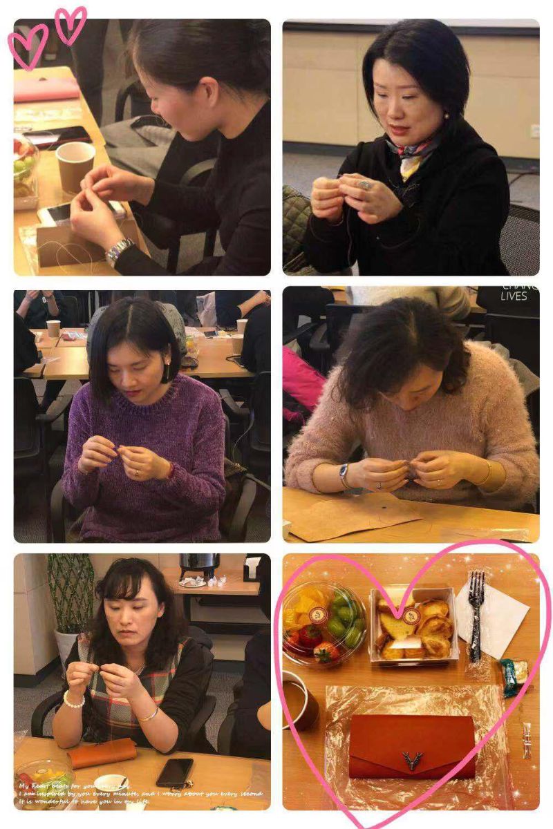 财务公司的女员工平日的工作主要在金融业务、资金结算、会计核算方面,真实传媒的女员工的日常工作主要是纪录片拍摄、制作、经营方面,此次一起过节让双方有了更多的产融交流机会,也让女同胞们放下手中的鼠标与键盘,重新穿针引线,通过亲手缝制手工钱包来体会制作的乐趣。跟着老师的指导,女同胞们一针一线地缝制,一开始陌生的手势让大家感觉无所适从,但渐渐地,女性对美与工艺的直觉让同事们很快掌握了技巧。大家说说笑笑,完成钱包的一侧缝边,停下手品品茶点,点评一下身边同事的作品,然后继续制作。缝制的过程,让女同胞们体会到工匠精神的不易,拿捏出针、入针的角度,每一步抽紧蜡线,一丝一毫抠细节,最终才能成就皮具上一条完美的波浪线。女同胞们从制作中得到了快乐,收获了成就感,大家纷纷与作品合影留念。