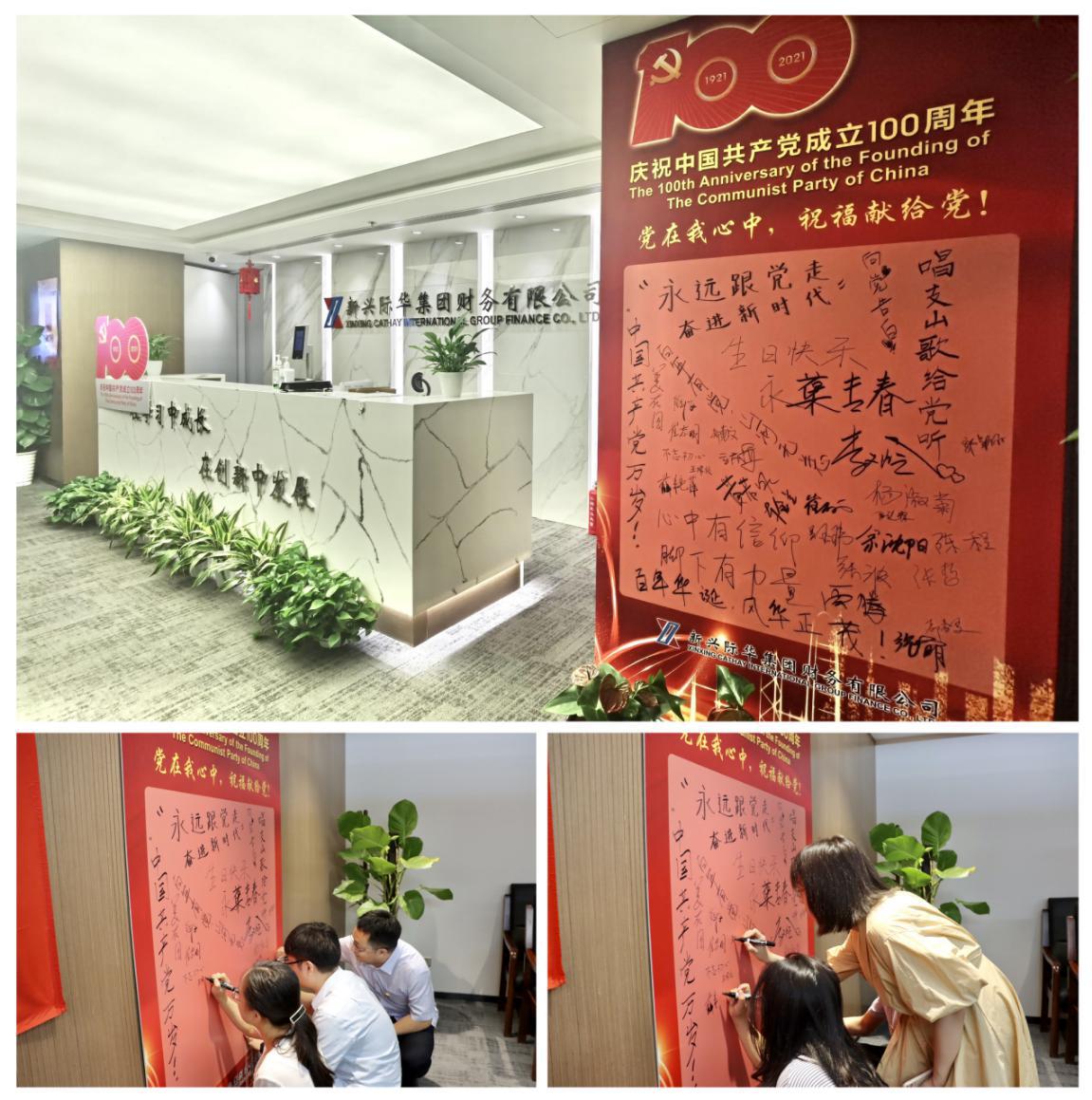 全体党员在主题活动墙上签字,为党献祝福。